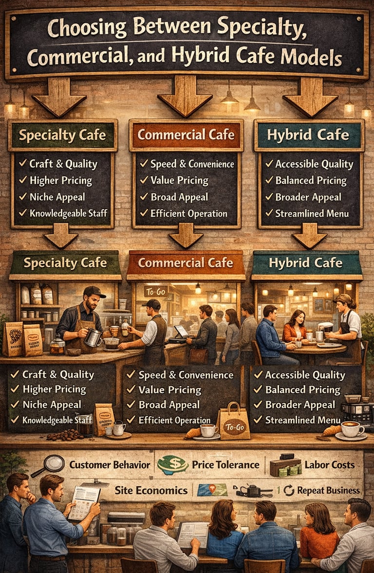 Choosing between specialty, commercial, and hybrid cafe models is not a branding exercise. It is a business-model decision.