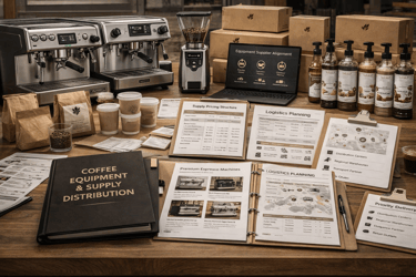A high-order commercial architecture service for businesses building or professionalizing a coffee equipment, café supplies & related distribution platform.
