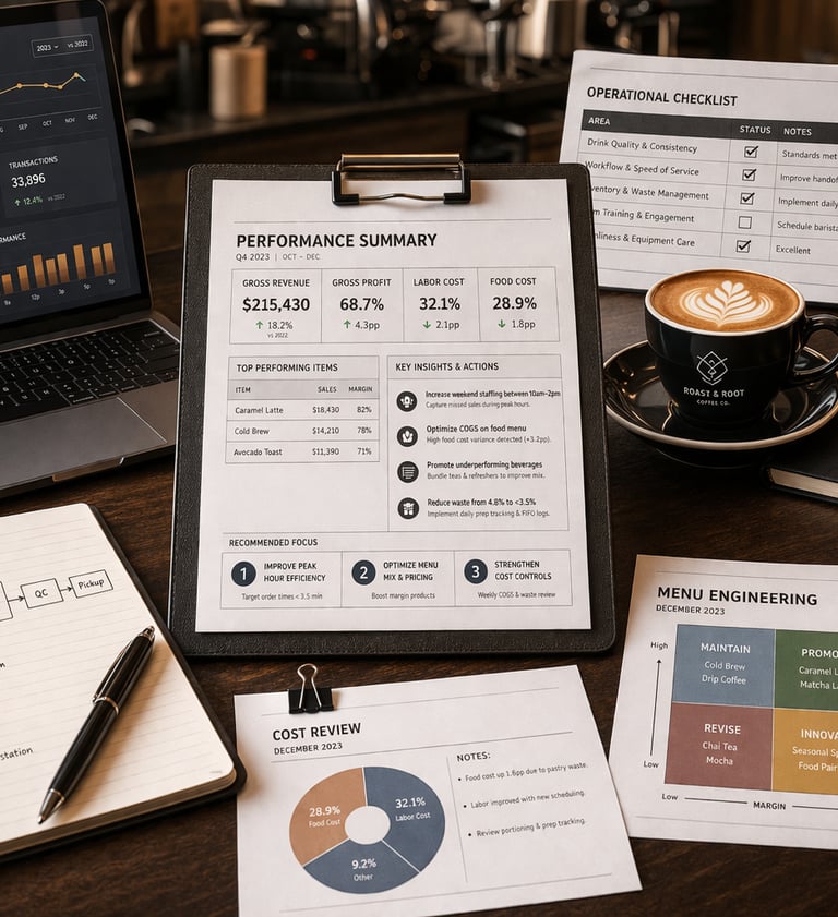 A structured business-health review designed to identify what is actually hurting margins, consistency, workflow, team performance & guest experience.